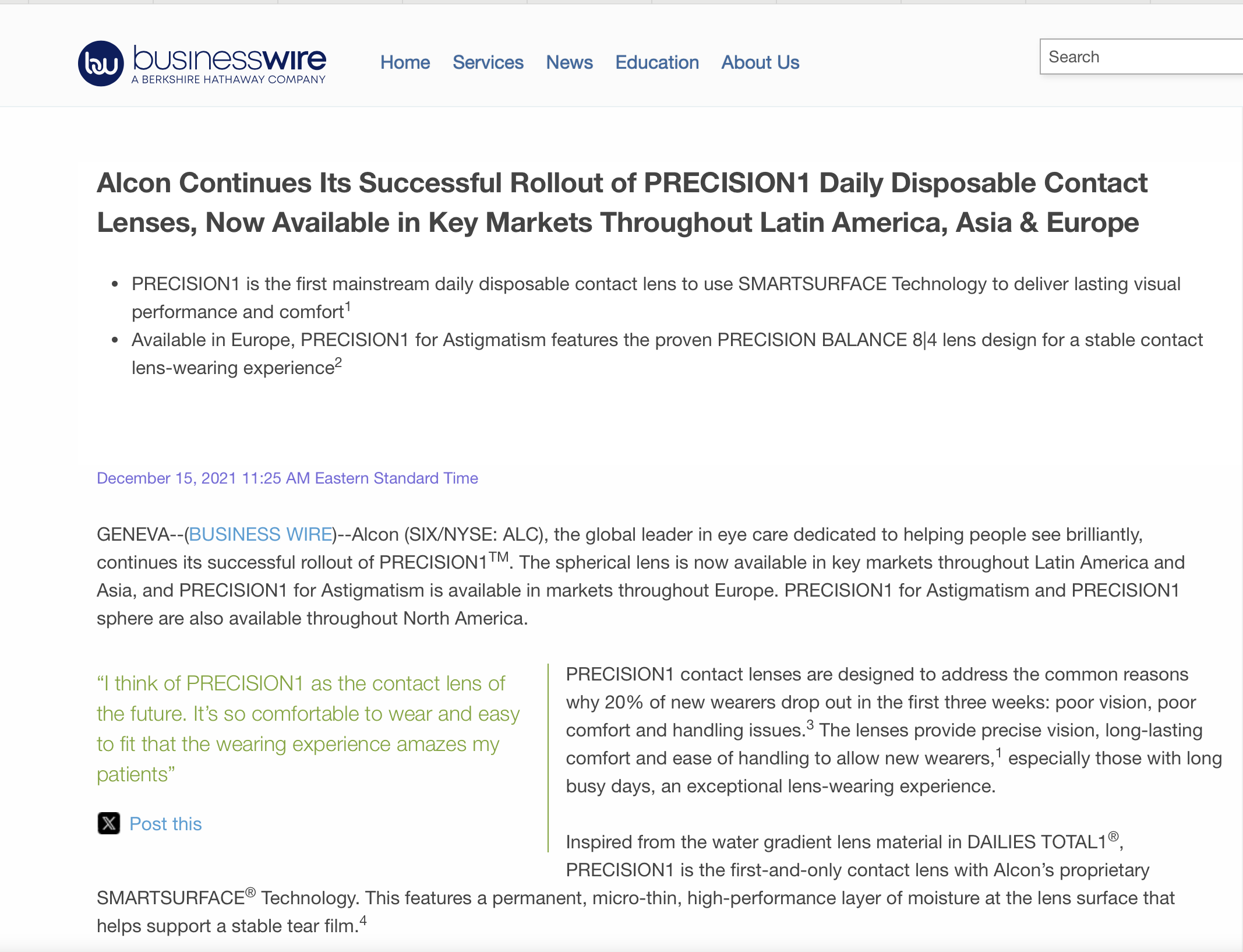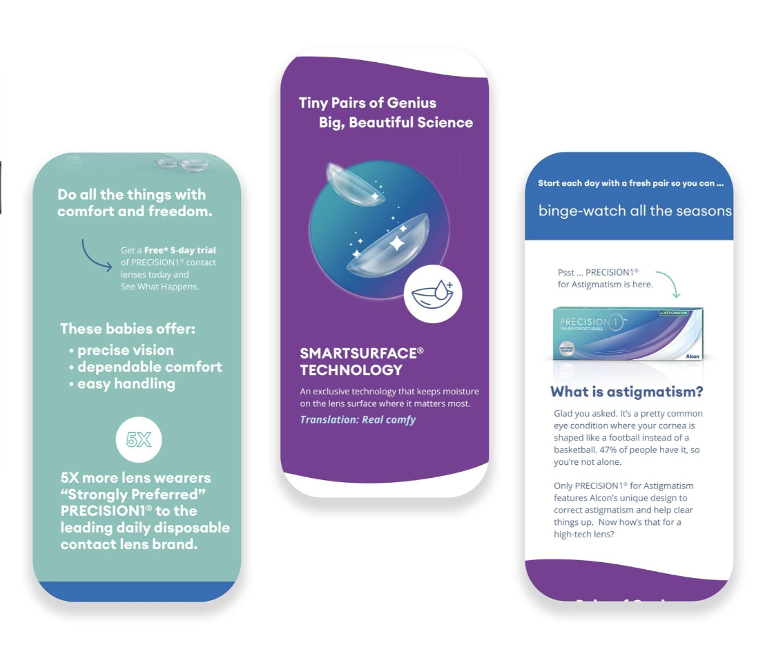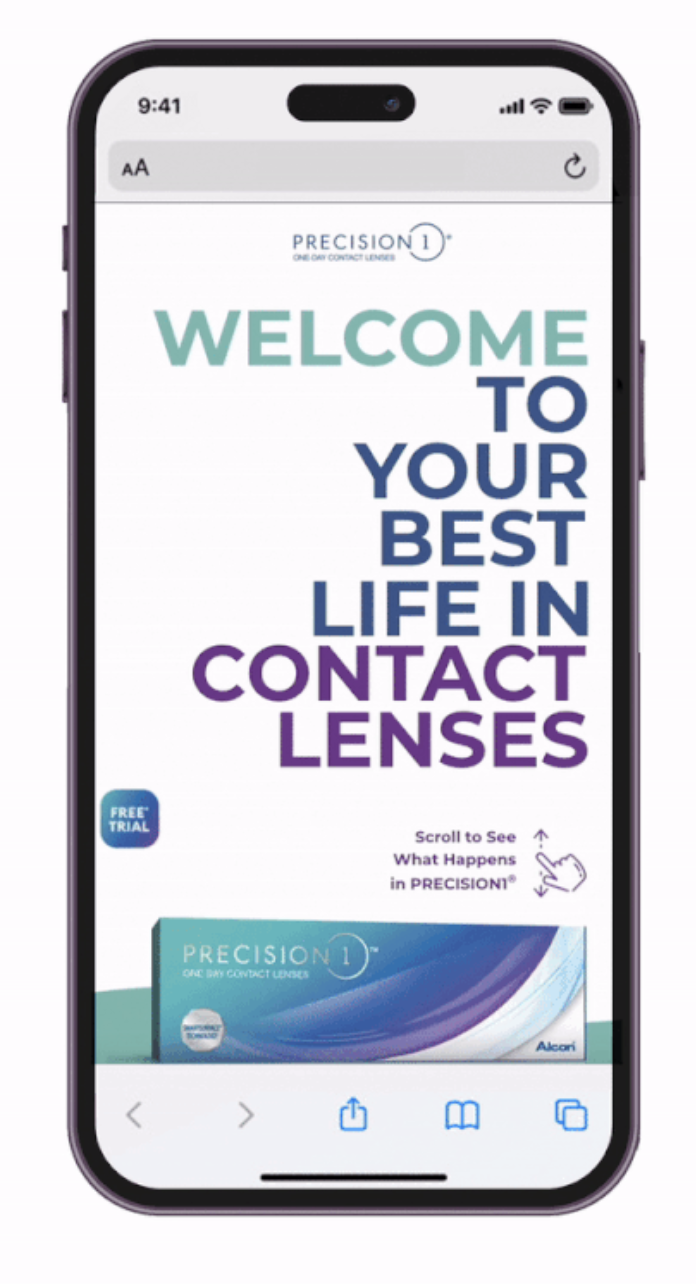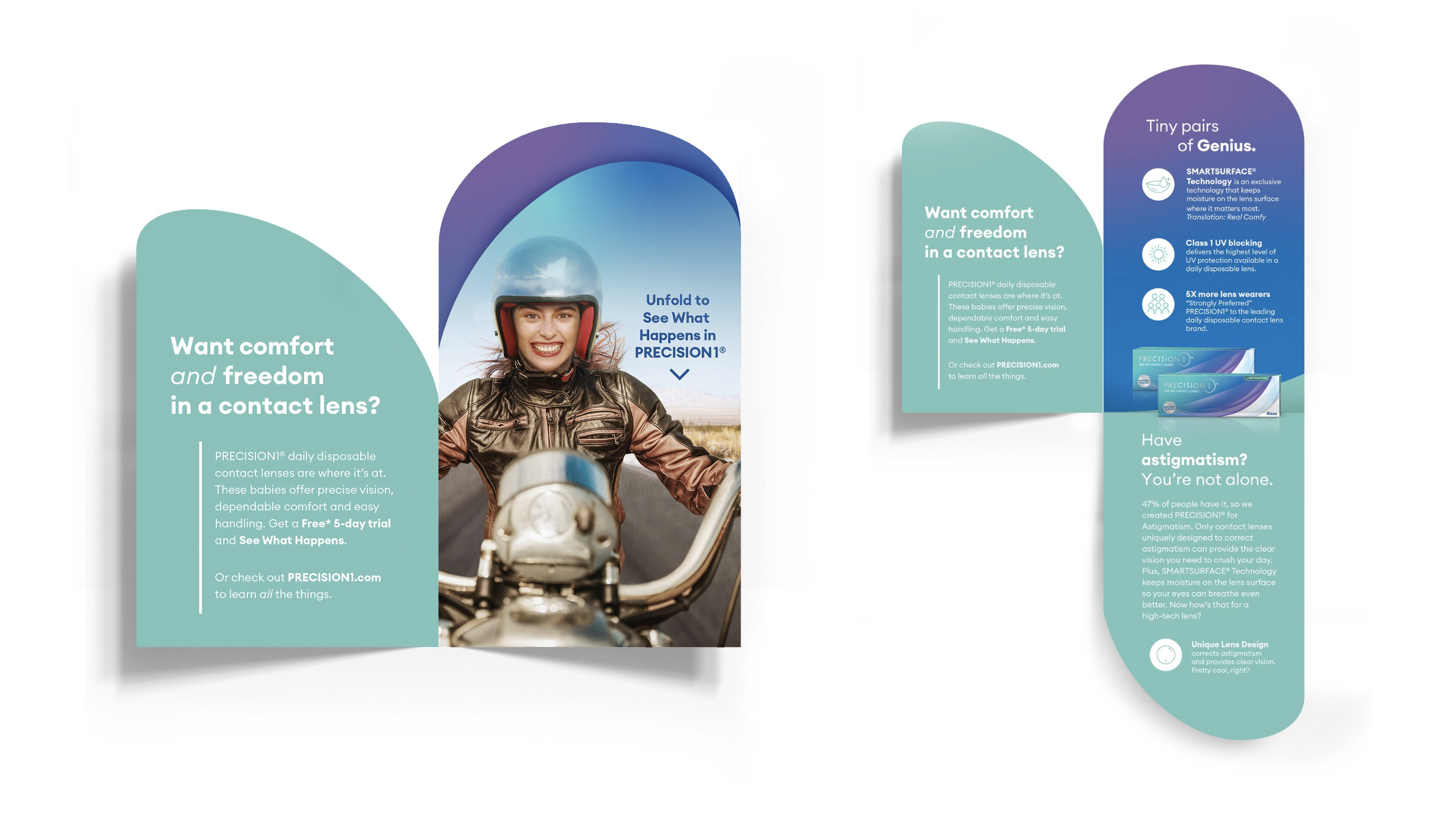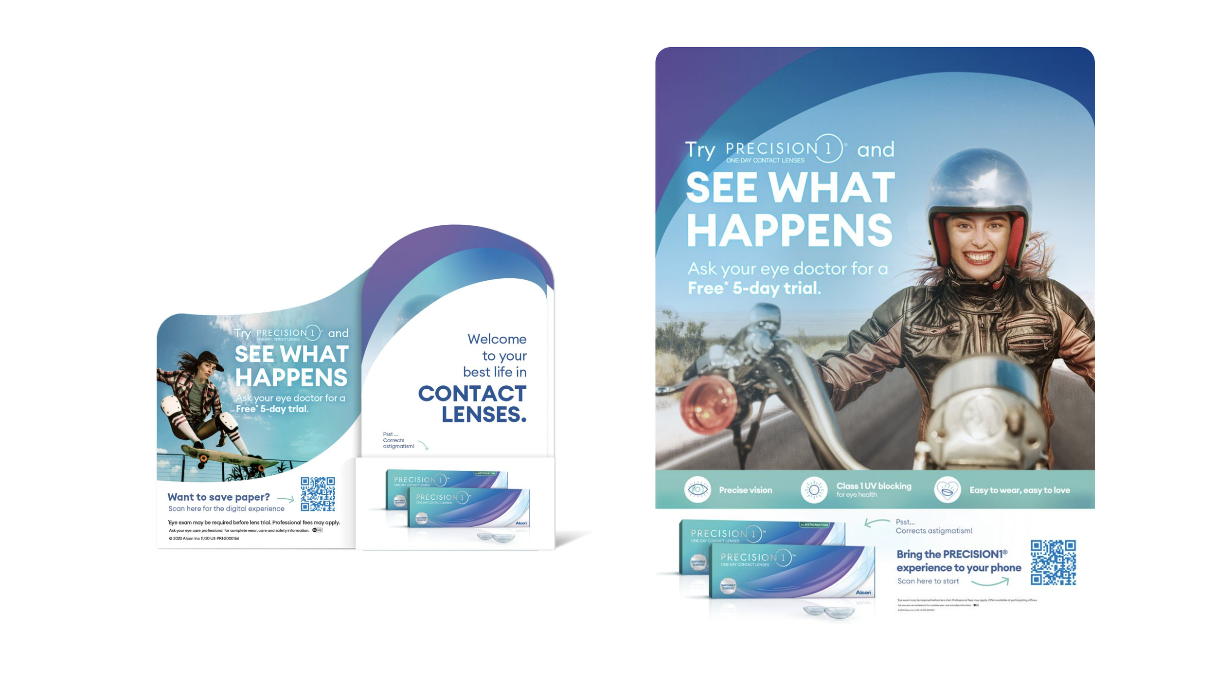 Welcome to life in lenses. For those new to contact lens wear, Precision1 offers ease of use, clear vision, and a lifestyle free of glasses. This campaign encourages lens wearers to give contacts a go and to SEE WHAT HAPPENS.